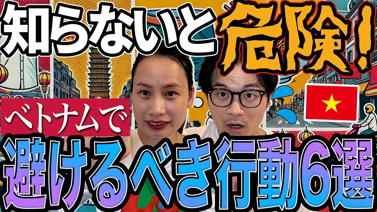 ベトナム旅行を安全に楽しむために必見!日本人が陥りがちな「危険な行動6選」を、国際カップル「カケル&ロアン」が解説します。寺院での服装マナーや交通ルール、辛すぎる料理の注文方法など、文化の違いを知るだけでトラブル回避!コメント欄では、現金払いの注意点や屋台での食中毒対策、トイレ事情など、現地在住者からのリアルな情報も満載。ベトナムの魅力を満喫するため、この動画で準備万端にしましょう!